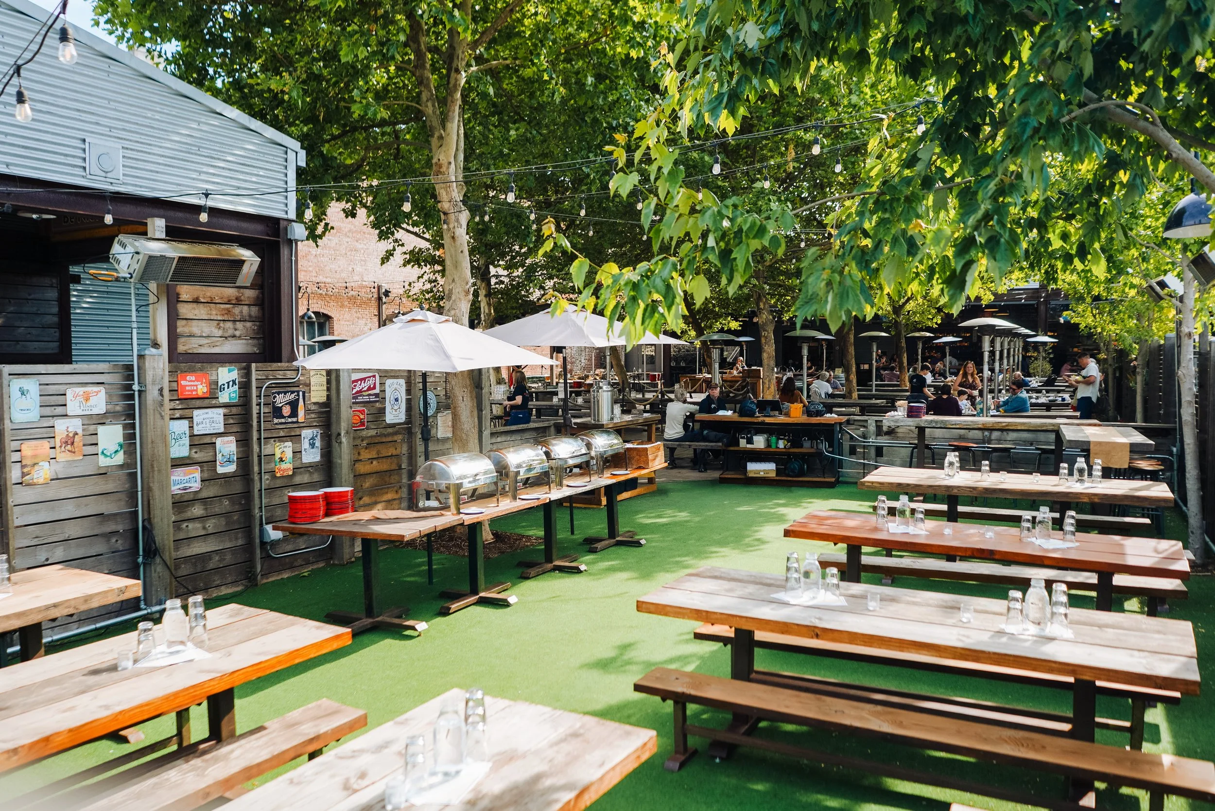 Our open-air garden has its own satellite bar, a fire pit, elevated stage for live music and plenty of cozy heat lamps.